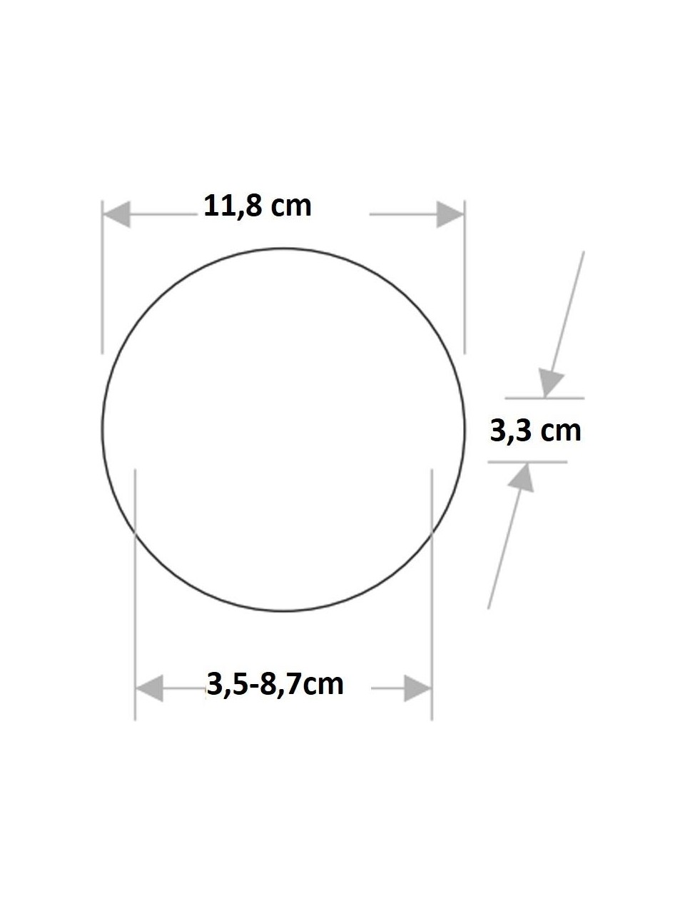Boyutlar: ~12 cm dış çap, ~2 cm derinlik