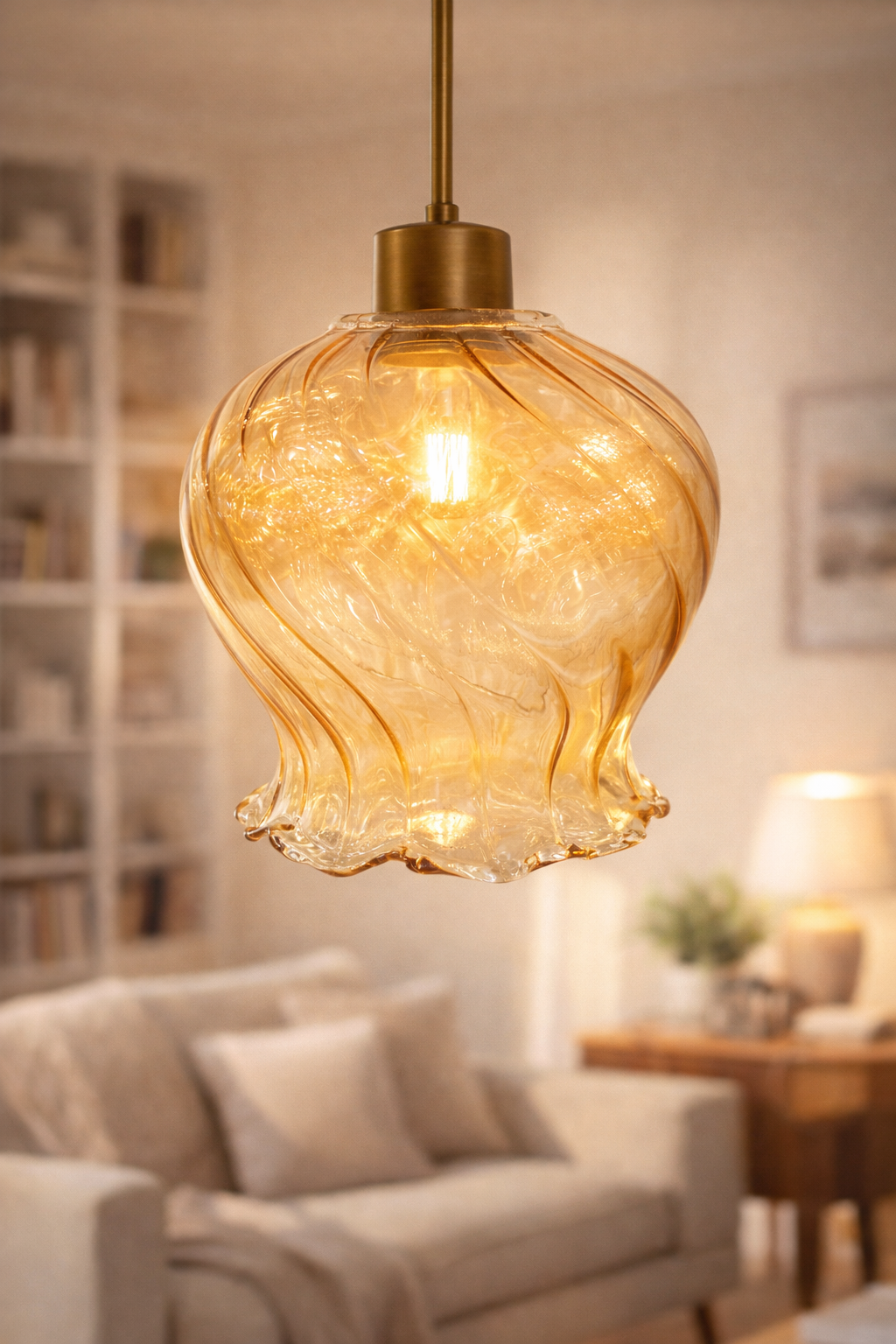 Bal Rengi Bombeli Kendinden Desenli Fanus Avize Camı: Evinize Sıcak ve Estetik Bir Dokunuş
