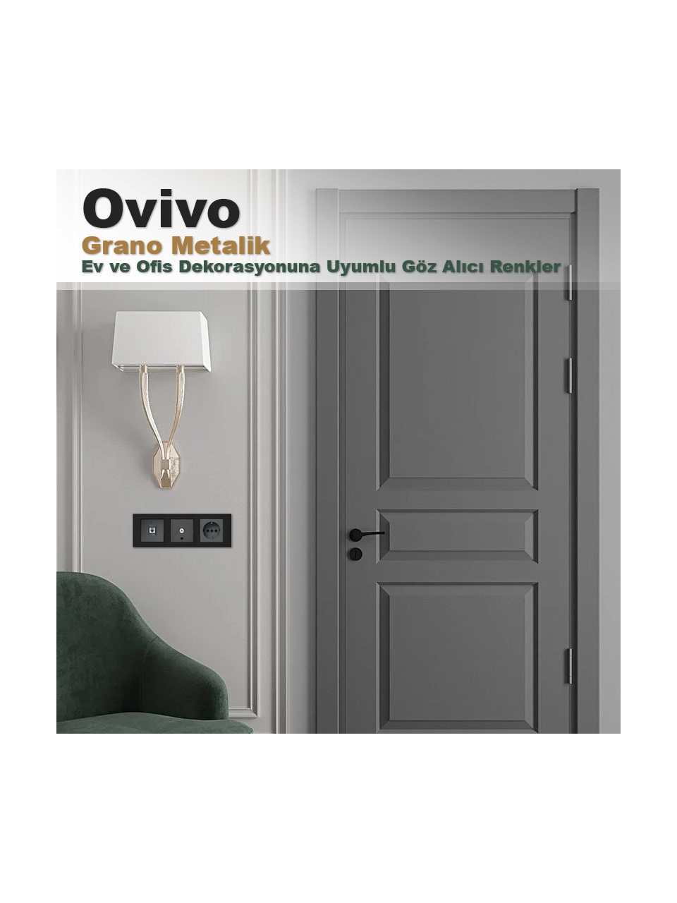 Ovivo Grano Metalik Topraklı Priz Füme + Füme Çerçeve, modern dekorasyon anlayışına sahip yaşam alanları için tasarlanmıştır.